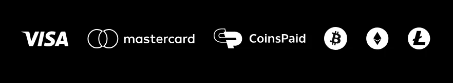 Innskudd- og uttaksmetoder: VISA, MasterCard, CoinsPaid, Bitcoin, Litecoin, Ethereum