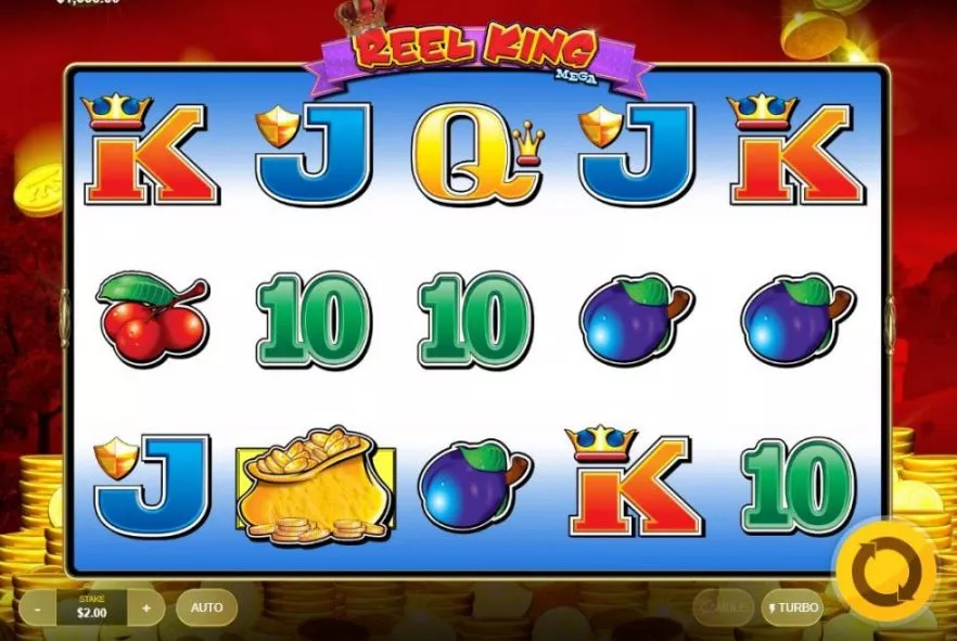 Det første du vil legge merke til når Reel King Mega dukker opp, er de klassiske kortsymbolene. J, Q, K og A er som tatt rett fra gamle dager når disse maskinene fortsatt var å finne her i Norge. Se også frem til å støte på klassiske kirsebær og plommer, i tillegg til pengesekker og et jokersymbol i form av en narrlue med ordet «wild». Symbolene er selvsagt ikke animerte, akkurat som resten av spilleautomaten. Den eneste animasjonen du vil se i Reel King Mega, er når den lille kongen gjør sin magi. Dermed får man en perfekt blanding av gammelt og nytt, samtidig som stemningen holdes på topp!