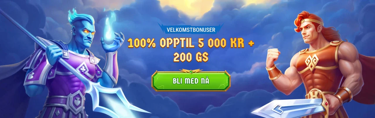 Velkomstbonus: opptil 5000 kroner + 200 freespins!